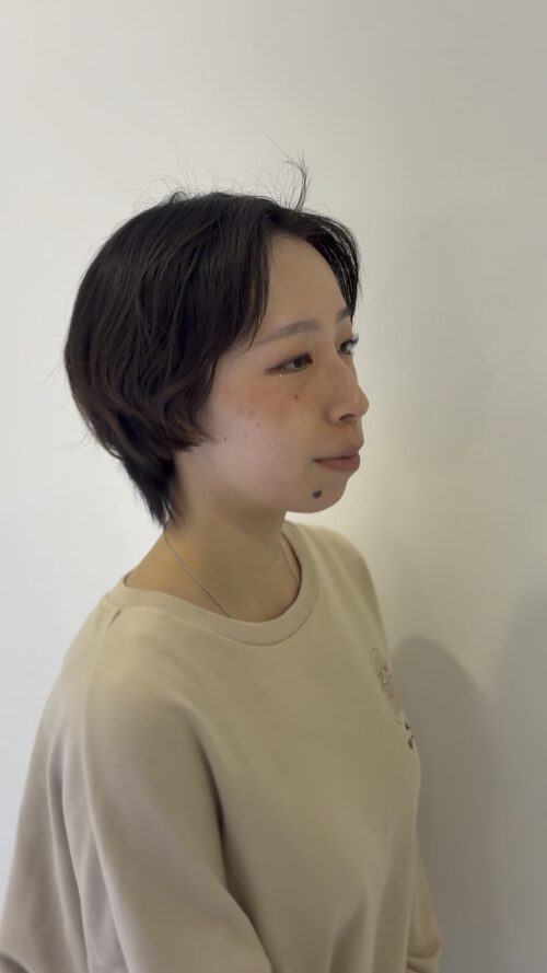 スタイリングで耳にかける事によりスッキリし、小顔感がより感じられます